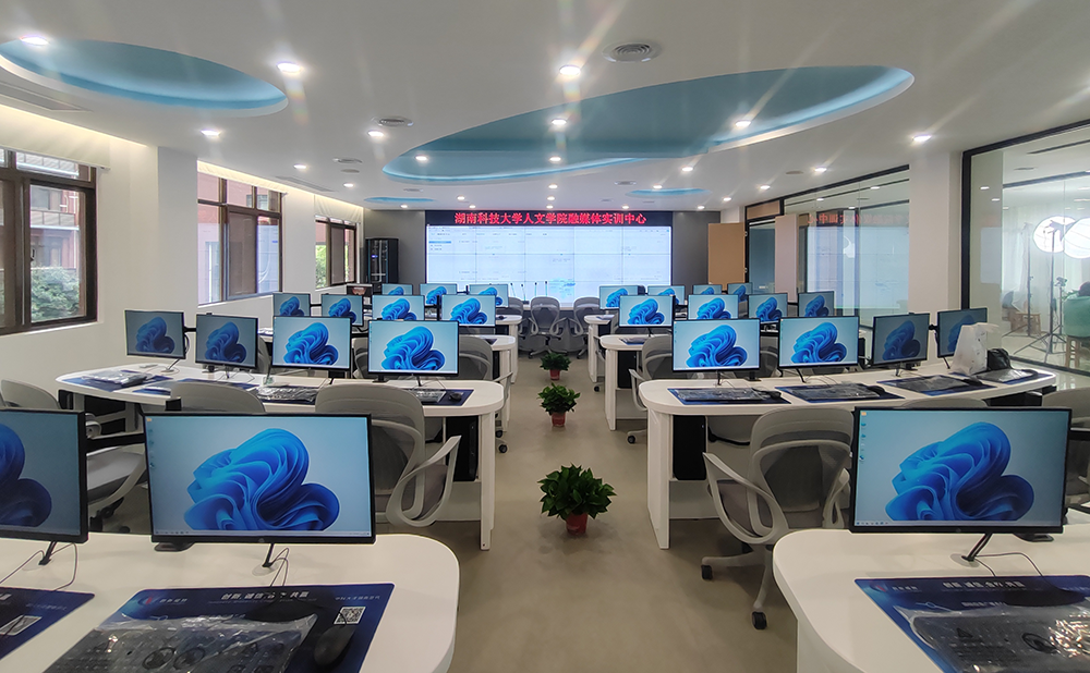 为进一步深化创新驱动的教育改革、促进产教融合,培养更多具有良好专业知识和职业素养、全媒体应用型人才,湖南科技大学以现有网络和基础设施为依托,建设湖南科技大学新闻传播融媒体中心实训平台。建设有融媒体指挥调度中心、融媒采编、融媒生产、融媒演播等实训平台,通过模块化功能设计,可全面模拟各类媒体单位从选题策划、采编生产、融媒演播、分发传播等业务流程和应用场景,对不同岗位对应的不同技能进行专项实战演练,采用理论教学、实践教学及案例教学结合方式,完整呈现全媒体融合新闻生产、影视制作、演播直播的全流程。为学生提供一个全面学习的技术支撑环境,在承担教学任务的同时,也能够满足学校教学研究、技能培训、教学模式创新等多类需求。