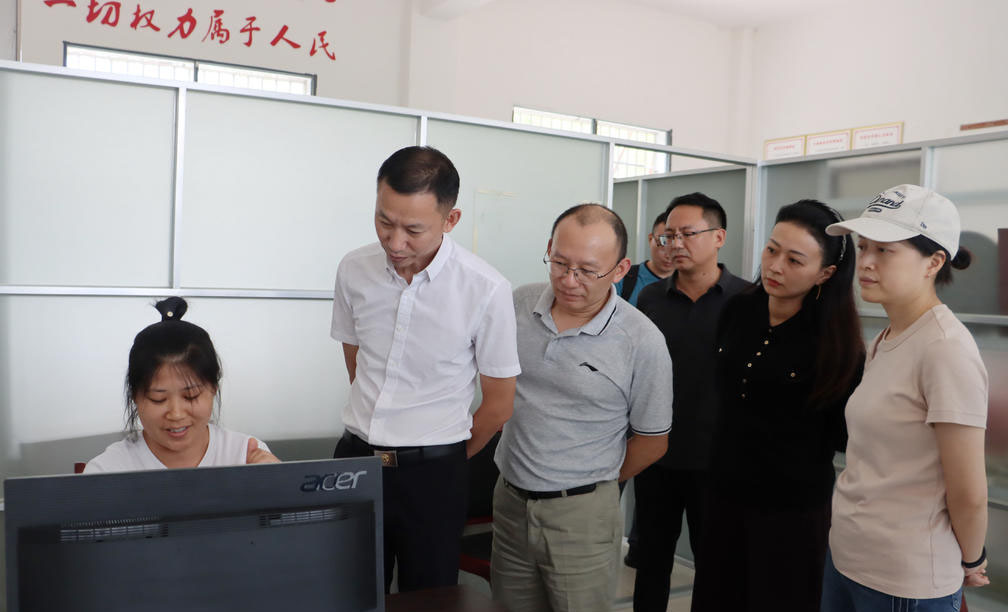 验收组在毛岭村村部查验村级平台建设情况