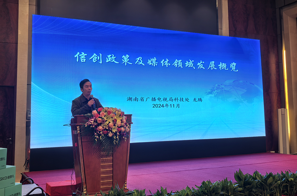 在“信创政策及媒体领域发展概览”主题分享中,湖南省广播电视局科技处龙腾副处长分享了信创化技术平台在媒体行业的应用案例与成功经验,探讨了信创化技术对于提升媒体自主可控能力、保障信息安全的重要意义。
